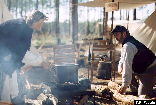 Reenactors often prepare their meals using the same methods common in the 1860s.