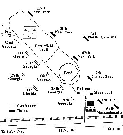 Finegan found that position at Olustee. With a lake called Ocean Pond on his left, a nearly impassable swamp on his right and only a narrow passage between, he called for troops to help defend Florida. Colquitt answered that call, bringing veteran troops from Savannah, Georgia.