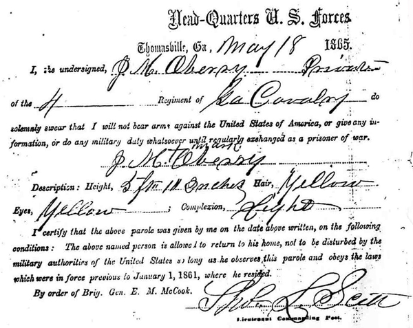 The following document of John Marion O'Berry was provided by Marinell Davis. Most of this information is on a Web site created by her daughter, Sarah Celeste Cope, at
