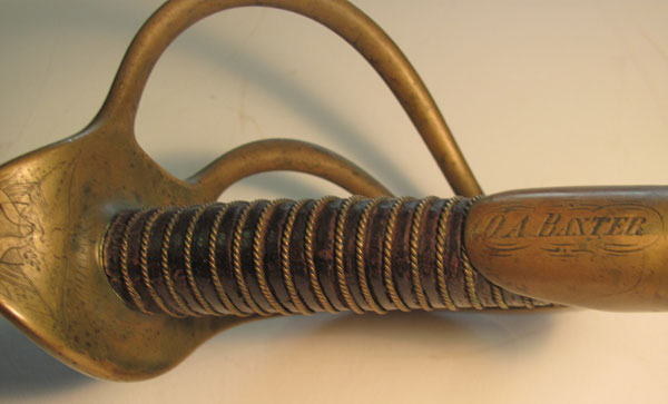 This sword was carried by 1st Lieutenant Orson A. Baxter. Lt. Baxter afterwards commanded Company G, 4th Massachusetts Cavalry at Fort Magruder, Virginia, during the Richmond-Petersburg campaign.