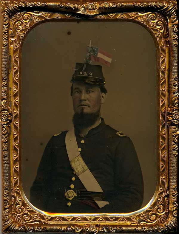 Brown is shown in the uniform of the Sumpter Light Guards, which was part of the 4th Georgia Infantry. He later resigned from that unit and joined Bonaud's Battalion. Brown was wounded at Olustee.