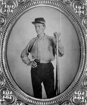 The son of Andrew and Adeline Denham, William was a West Florida Seminary Cadet and private in the 1st Florida Infantry. He was captured during his first skirmish, but he was released and recovered from his wounds. The Florida State Archives Web site states that Denham later served in the 2nd Florida Cavalry and in Captain Scott's 5th Florida Battalion. However, Richard Ferry, a Civil War historian who specializes in Florida, states that William Demhan "...was not in the 2nd Fla. cav to my knowledge." Civil War muster records, especially those of the Confederacy, were often inaccurate or incomplete. Photographs were taken in the 1860s.